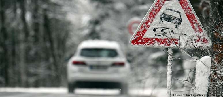 Acidentes de trânsito, congestionamentos e bloqueios de rodovias e interrupções no transporte público devido ao mau tempo foram registrados em ao menos sete estados alemães.O ano novo começou com os primeiros problemas do inverno na Alemanha. Grande parte do país enfrenta condições climáticas tempestuosas, com neve e gelo causando congestionamentos caóticos, vários acidentes de trânsito, bloqueios de rodovias e interrupções no transporte público. De acordo com o Serviço Meteorológico Alemão (DWD), as temperaturas devem cair significativamente nos próximos dias. No sábado, deve fazer -11 °C na região da Floresta Negra e 1°C na costa do Mar do Norte.