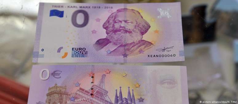 Cédula foi lançada pela cidade natal do filósofo crítico do capitalismo para comemorar os 200 anos de seu nascimento. Mais de 100 mil unidades já foram vendidas, tendo grande parte delas sido enviada para a China.Uma nota de 0 euro lançada por ocasião do 200º aniversário do filósofo Karl Marx, famoso por suas críticas ao capitalismo, transformou-se num sucesso de vendas na Alemanha.