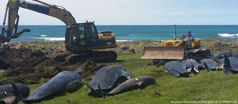 "Em muitos desses casos é provavelmente uma combinação de vários fatores", concluiu. O Departamento de Conservação da Nova Zelândia disse responder a uma média de 85 casos de encalhamentos de mamíferos por ano. A maioria envolve um único animal em vez de grandes grupos.