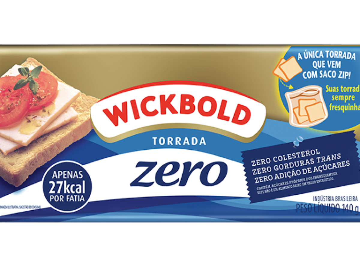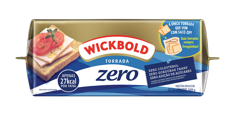 Moderna, a embalagem da nova torrada foi inspirada na do Pão de Forma Zero. A ideia é trazer unidade aos produtos da Wickbold, facilitando a identificação do consumidor. Exclusividade da marca, a Torrada Zero vem acompanhada do exclusivo saco Zip, ideal para guardá-la após a abertura da embalagem. Com a conservação correta, ela continua crocante e mantém o sabor característico por muito mais tempo.