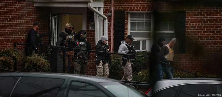 Imagens de agentes do ICE, FBI, da Agência de Combate às Drogas (DEA) e dos Serviços de Delegados de Polícia invadindo complexos de apartamentos em busca de membros de gangues foram amplamente divulgadas.