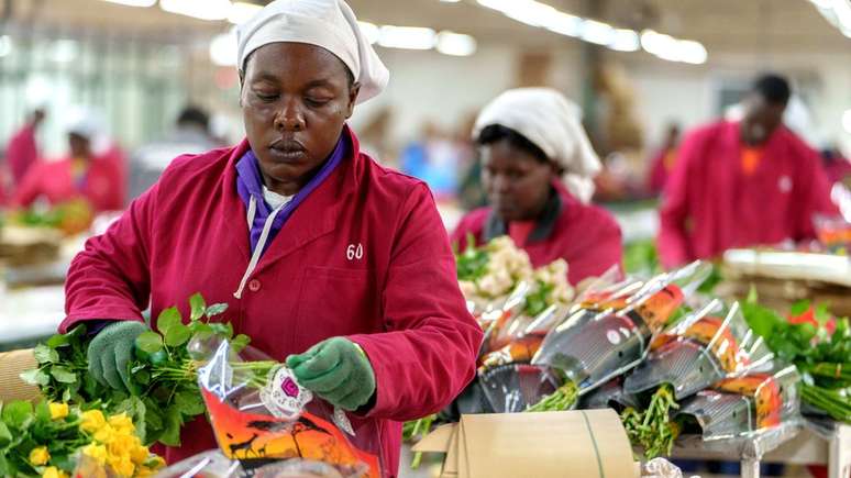 Depois de embaladas, essas flores viajarão centenas de quilômetros em uma "atmosfera controlada" entre Nairóbi, capital do Quênia, até a costa do país.