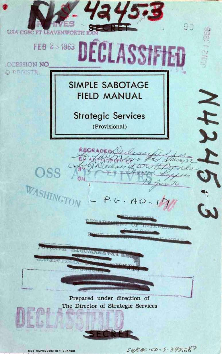 Intitulado Simple Sabotage Field Manual (Manual de Sabotagem Simples de Campo, em tradução livre), o documento de 32 de páginas foi formulado pelo Escritório de Serviços Estratégicos dos Estados Unidos, órgão de inteligência que funcionou entre 1942 e 1945 e é considerado o antecessor da CIA, a Agência Central de Inteligência, criada em 1947 pelo governo americano.