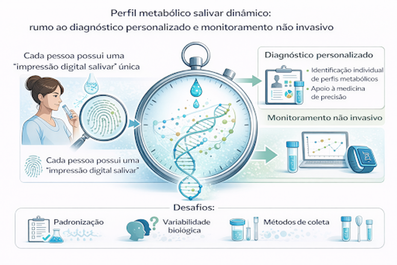 Pesquisas recentes indicam que cada pessoa parece ter uma espécie de "impressão digital salivar", um perfil metabólico único, mas que muda ao longo do tempo e pode revelar muito sobre nossa saúde. Ainda há desafios importantes para transformar essa ideia em prática clínica. Mas o potencial é grande para fornecer diagnósticos personalizados e monitoramentos não invasivos.