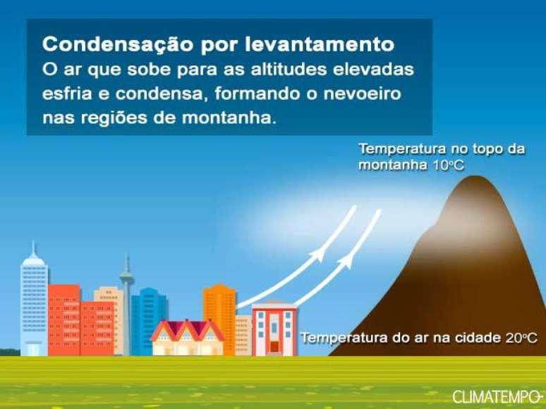 O nevoeiro se forma pelo processo físico chamado de condensação. A condensação pode ocorrer de várias formas: