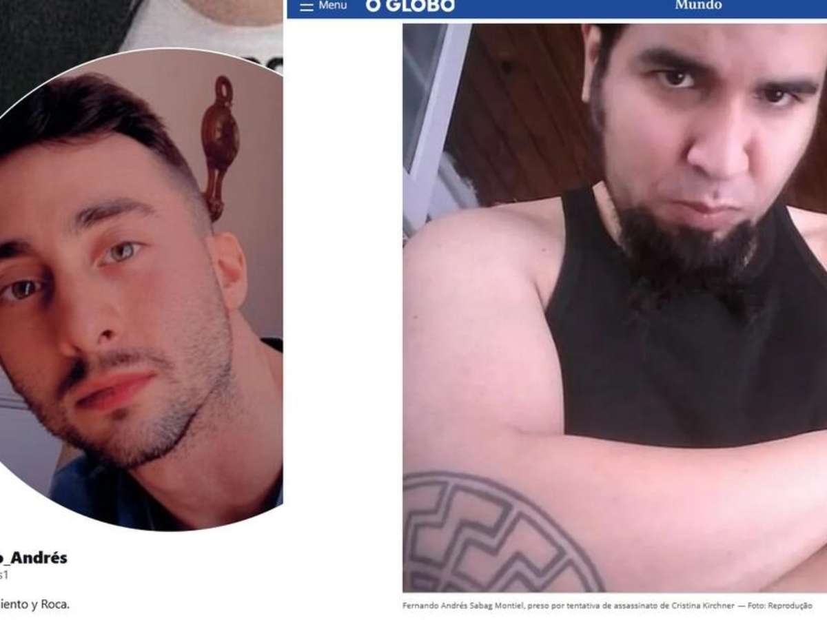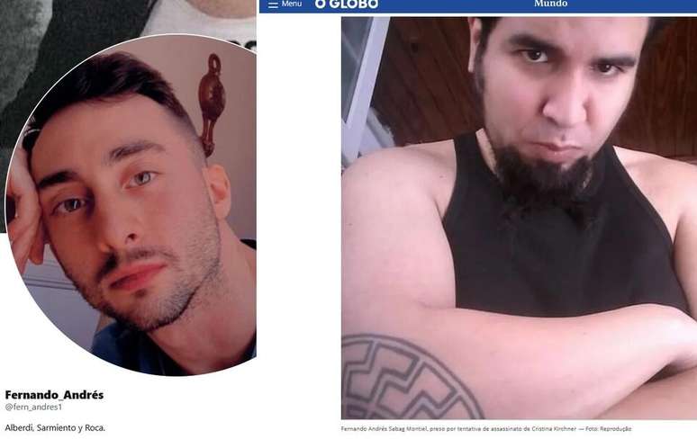 Comparativo. Fernando Andrés (à esq.), que não tem relação com o atentado, e Fernando Sabag Montiel (à dir.), suspeito de tentar assassinar Cristinar Kirchner