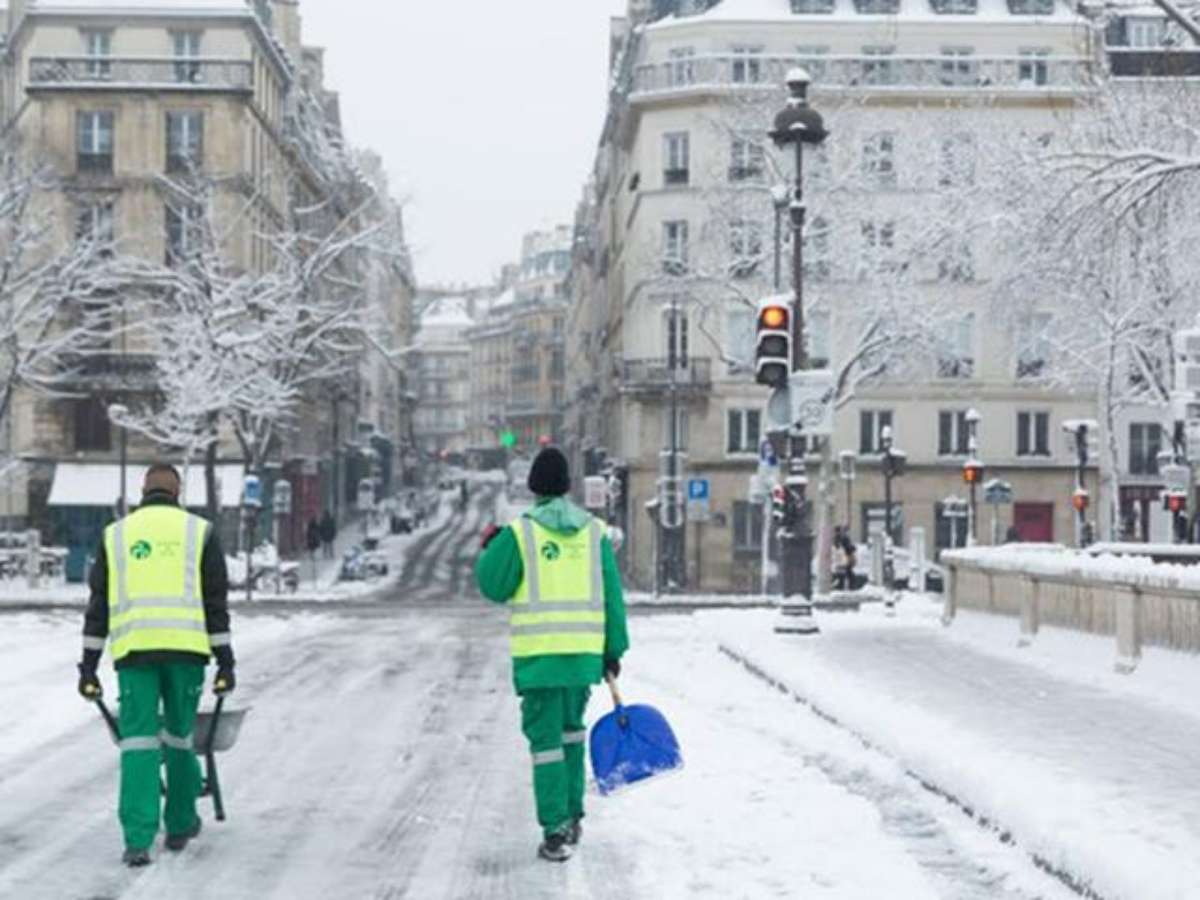 Neve em Paris nesta quarta-feira, 28/02/2018.