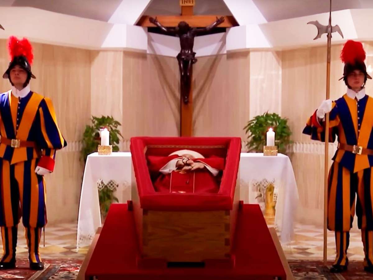 Ainda será dado um tempo, contudo, para que os fiéis possam se despedir de Francisco no caixão na Basílica de São Pedro. O papa Bento XVI foi elevado em um catafalco e só foi colocado no caixão triplo após o velório.