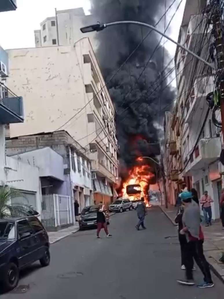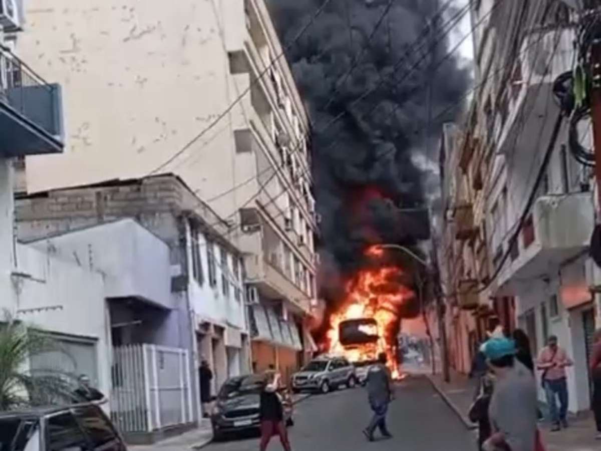 Ônibus de excursão pega fogo no Centro Histórico de Porto Alegre