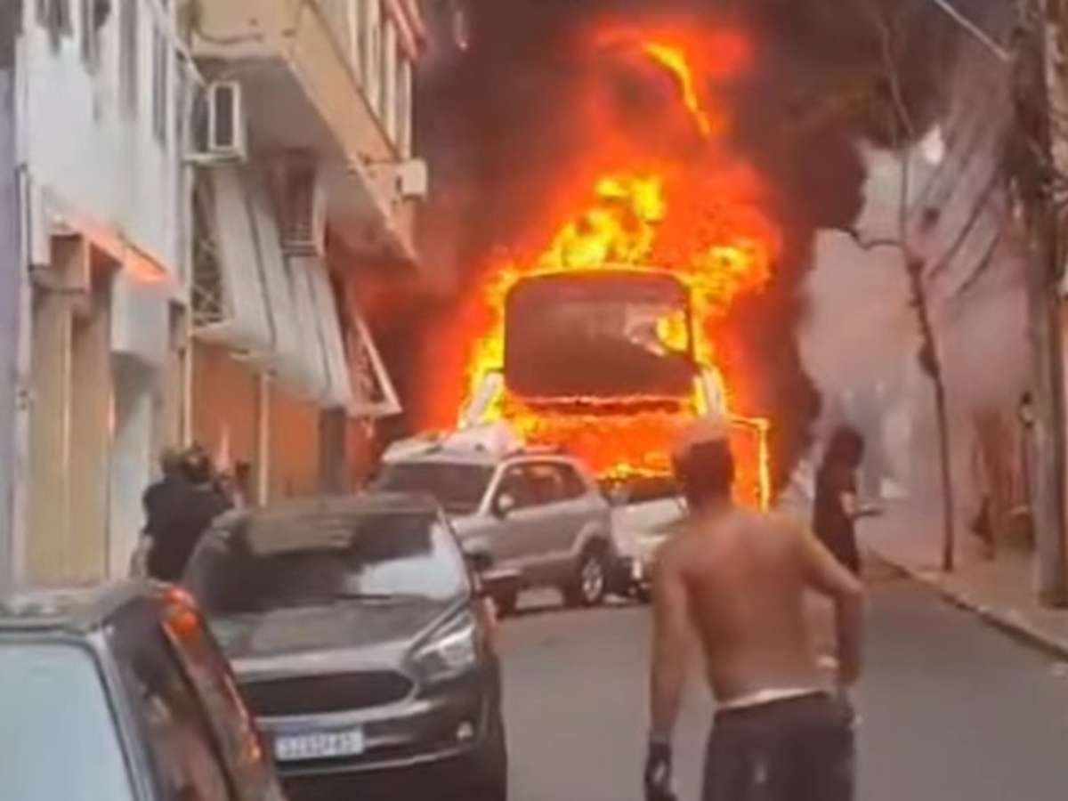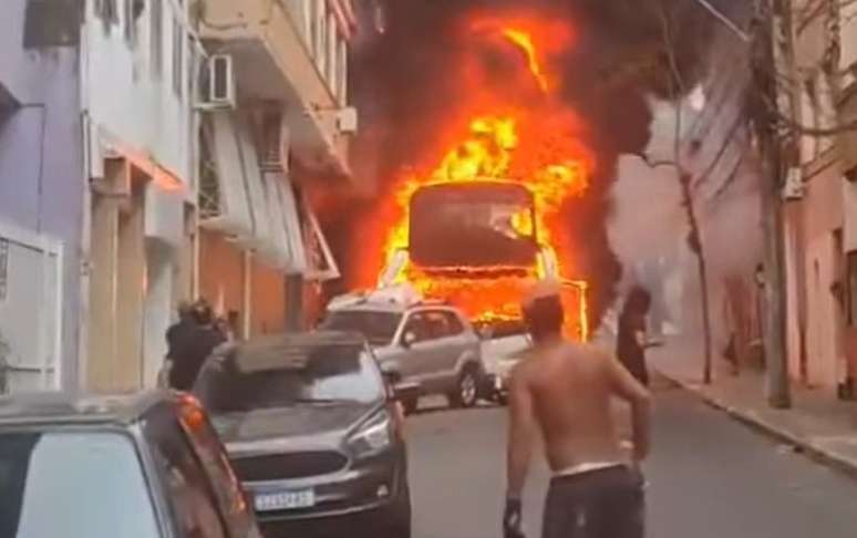Durante a descida, o veículo atingiu dez carros estacionados e acabou pegando fogo. As chamas se espalharam rapidamente e atingiram a fachada e apartamentos de um prédio residencial. Passageiros registraram o momento em vídeo, mostrando a fuga desesperada dos adolescentes — alguns pularam sobre carros para escapar do incêndio.