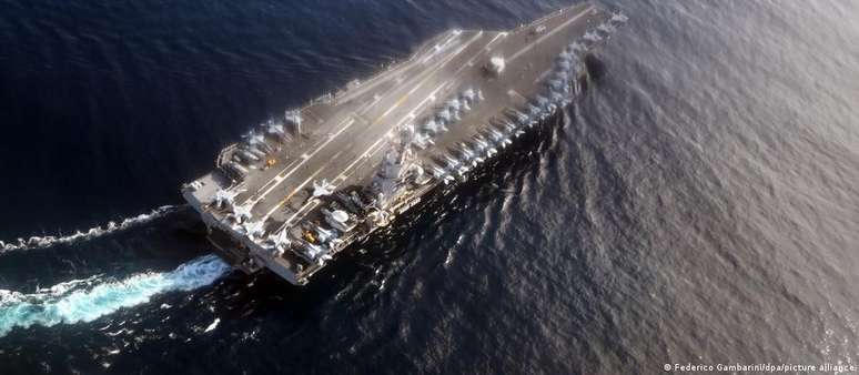 O maior porta-aviões do mundo, o USS Gerald R. Ford, que fez parte da frota do Caribe durante a operação contra o presidente venezuelano Nicolás Maduro, aproximava-se nesta quarta-feira do Estreito de Gibraltar para se unir ao USS Abraham Lincoln, detalhou o New York Times. Ele é acompanhado por três destroieres e deverá chegar ao seu destino até o fim de semana.