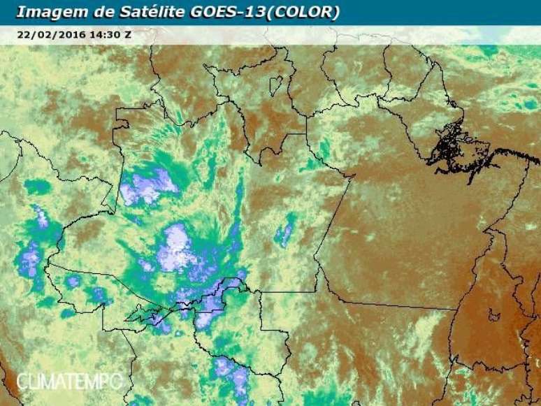A imagem de satélite da região Norte mostra o Tocantins com predomínio de tom marrom que indica poucas nuvens.