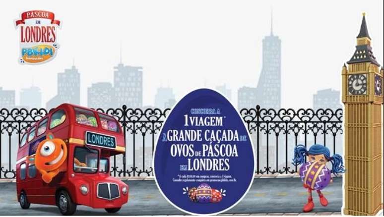 A campanha "Páscoa em Londres" funciona da seguinte forma: a cada R$ 80 em compras de qualquer produto, o cliente ganha um cupom para cadastro no hotsite http://promocao.pbkids.com.br/ e participa do sorteio. A promoção vai até o dia 21/03 para compras realizadas pelo site e até o dia 01/04 para compras realizadas nas lojas físicas.