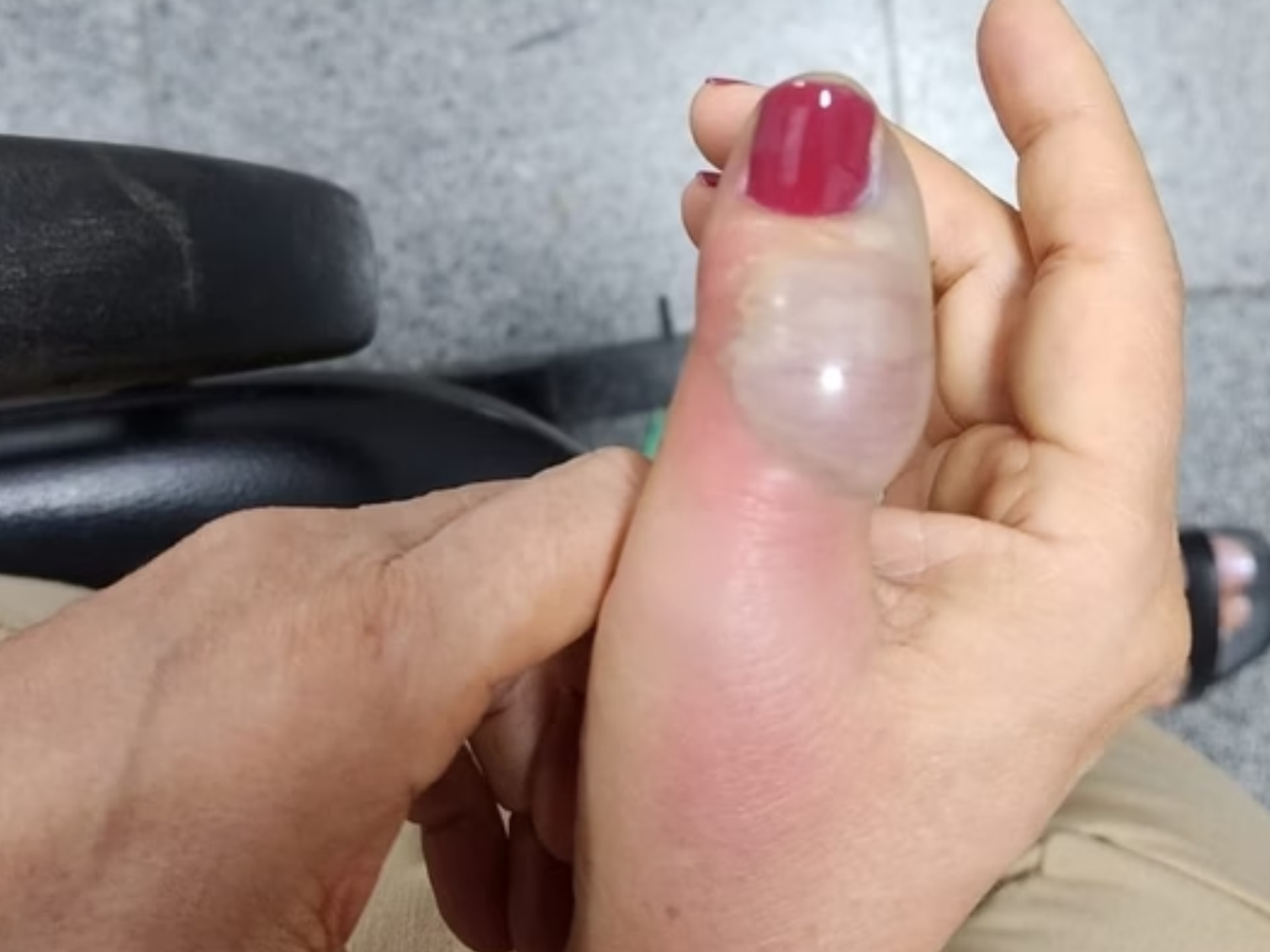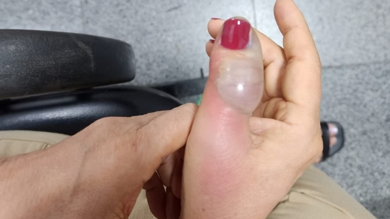 A complicação surgiu poucas horas depois do atendimento. Durante o procedimento, a manicure descolou acidentalmente um pedaço da unha com uma lixa, causando um pequeno machucado. A dor, inicialmente discreta, rapidamente se intensificou. Marise relata que chegou a quase desmaiar de dor na noite seguinte. Ao procurar atendimento médico, recebeu antibióticos e anti-inflamatórios, mas o quadro só piorava. Apenas cinco dias após fazer as unhas, ela precisou de uma cirurgia de urgência para conter a infecção, que já ameaçava comprometer seriamente o dedo.