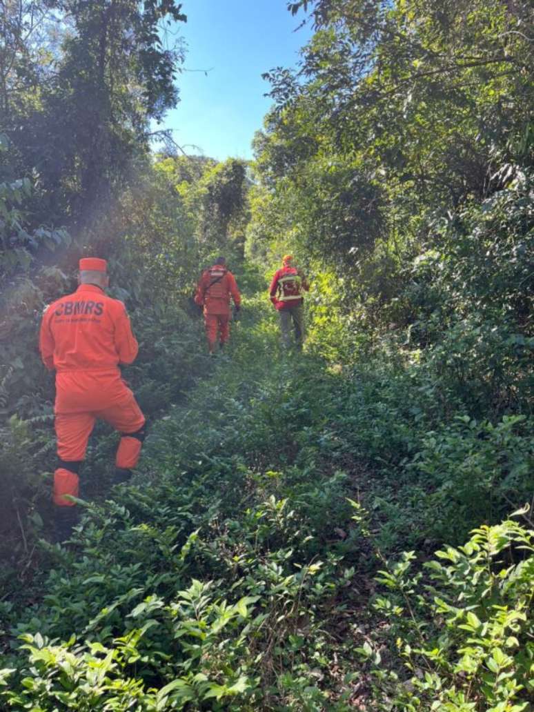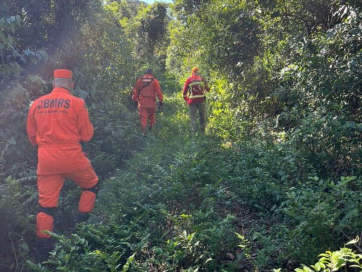 Polícia e bombeiros realizam incursão em mata na busca por idoso desaparecido em Três Coroas
