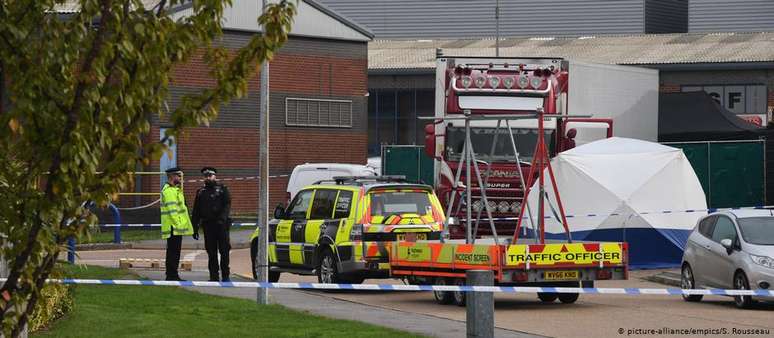 Autoridades suspeitam que veículo teria partido da Bulgária e passado pela Irlanda antes de entrar em território inglês, mas evitam falar em tráfico de pessoas. Motorista é detido por suspeita de assassinato.A polícia do Reino Unido encontrou nesta quarta-feira (23/10) 39 pessoas mortas dentro de um caminhão em uma área industrial na cidade de Grays, no condado de Essex. O motorista do veículo, de 25 anos, foi detido por suspeita de assassinato.