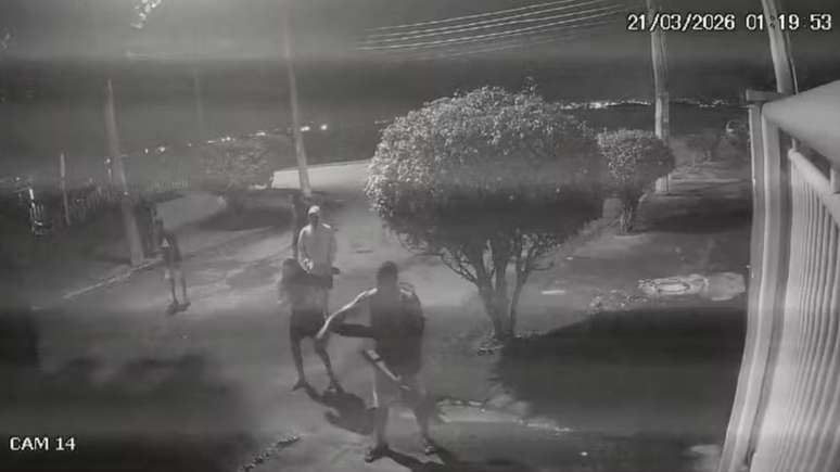 As imagens do circuito interno mostram o animal caminhando pela via pública por volta de 1h19. Na sequência, o grupo de homens surge portando objetos de madeira. Em outro ângulo do registro, a capivara aparece em tentativa de deslocamento enquanto é cercada pelos indivíduos. O animal caiu na via após sofrer impactos físicos e, em seguida, o grupo se dispersou do local.