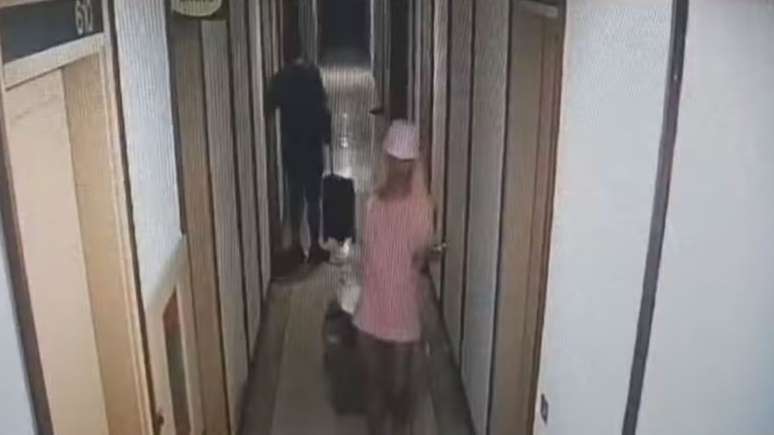 Imagens das câmeras de segurança do condomínio capturaram imagens dos suspeitos deixando o apartamento com mochilas e malas. Em uma imagem de rede social, Bruna apareceu com uma das malas roubadas.