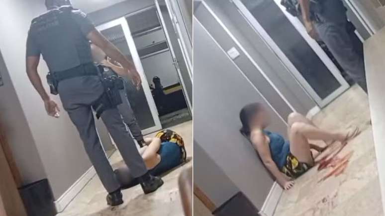 Além do que foi registrado pelas câmeras do edifício, o morador afirmou que o agente também desferiu um soco na mulher antes dos chutes. O vídeo obtido mostra o momento exato em que a vítima, já deitada no chão, tenta segurar o pé de uma policial feminina. Nesse instante, o outro policial militar que acompanhava a diligência reage desferindo um chute direto no rosto da mulher, que já apresentava ferimentos visíveis.