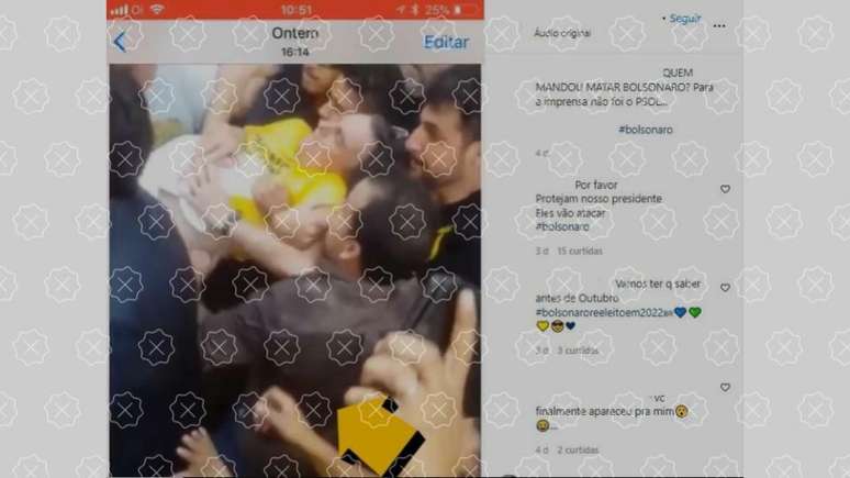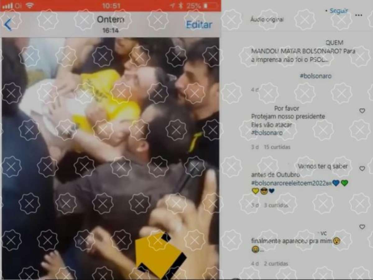 Um vídeo que mostra o presidente Jair Bolsonaro momentos após a facada que levou durante a campanha eleitoral, em 6 de setembro de 2018, em Juiz de Fora (MG), vem sendo compartilhado nas redes com uma edição que leva a crer que ele foi alvo ainda de um soco ao ser socorrido, o que é falso. Um dos filhos do presidente, o deputado Eduardo Bolsonaro, desmentiu a desinformação na época. Um inquérito da Polícia Federal também concluiu que não houve agressão.