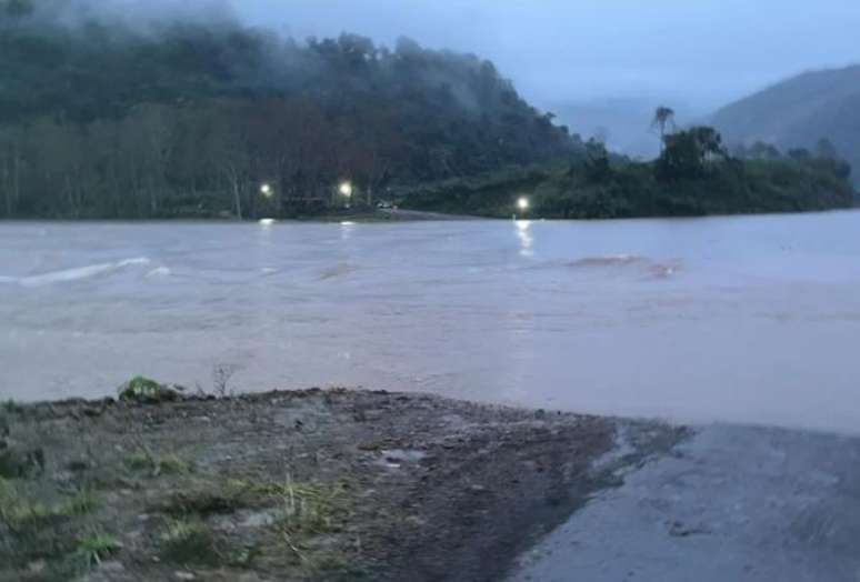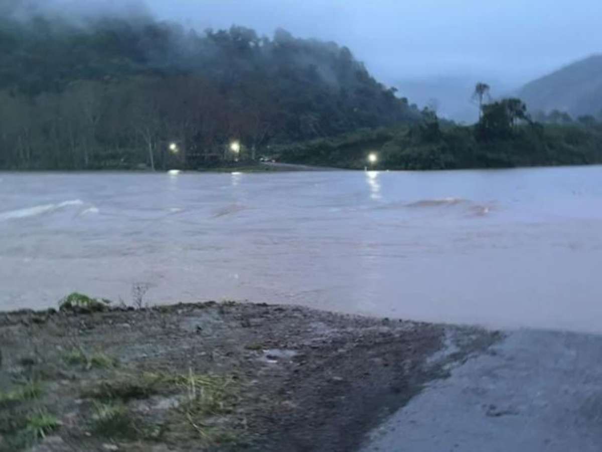 Ponte recém-inaugurada é interditada após elevação de rio na Serra