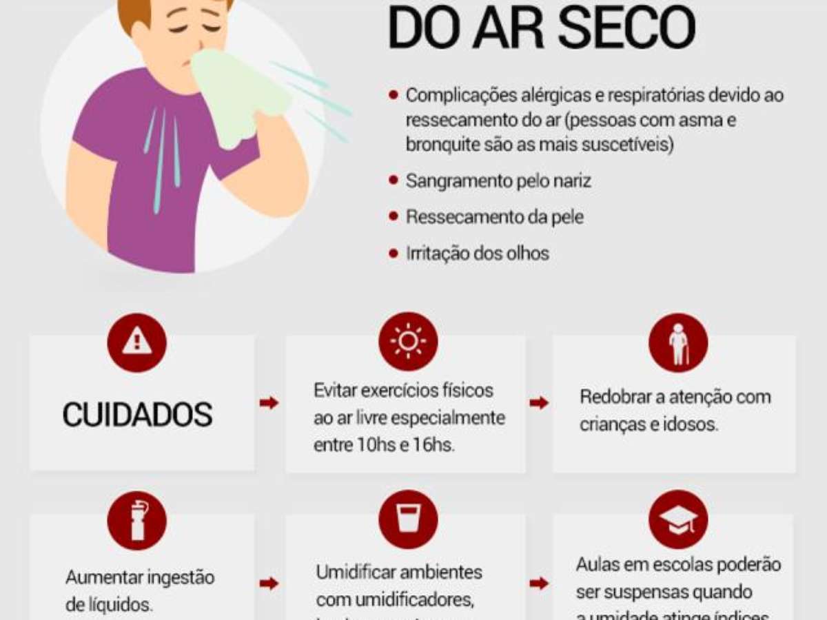 A Organização Mundial da Saúde recomenda um nível mínimo de 60% de umidade relativa no ar para o conforto e saúde do ser humano. Passar uma semana eventualmente com níveis de umidade no ar muito abaixo deste valor não causa grandes danos à saúde. O problema é manter esta situação de ar seco por um longo período, por semanas seguidas.