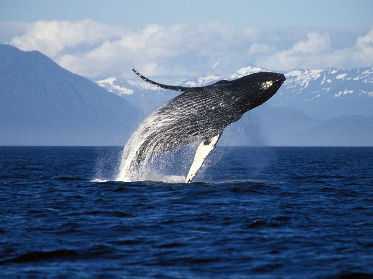 Se os visitantes tiverem sorte, podem testemunhar um espetáculo — uma baleia saltando da água em uma incrível apresentação de acrobacias de cetáceos, antes de cair de volta na água.