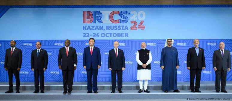 O Brics - que se expandiu para incluir Irã, Egito, Etiópia e os Emirados Árabes Unidos - acusa Washington de "transformar o dólar em uma arma" e intensificou os planos para criar uma nova moeda conjunta como alternativa ao dólar depois que os EUA e a União Europeia impuseram sanções à Rússia por causa da invasão em grande escala da Ucrânia em 2022. O bloco do Brics está preocupado com a possibilidade de ser alvo de sanções caso se desentenda com o Ocidente.