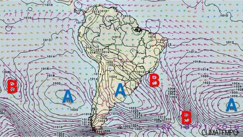 Todos os dias, para fazer a previsão do tempo para os dias seguintes, os meteorologistas determinam onde estão os centros de baixa e de alta pressão atmosférica e analisam como eles devem se movimentar. É a presença de alta e de baixa pressão do ar que determina a condição do tempo, se vai chover, se vai esfriar, se o tempo vai ficar seco.