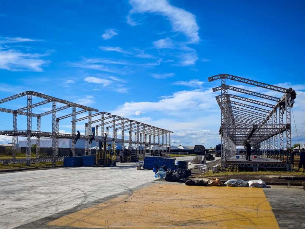 O Complexo Cultural do Porto Seco já vive o clima do Carnaval 2026, com a montagem das estruturas em ritmo acelerado para garantir a realização dos desfiles das escolas de samba nos dias 27 e 28 de fevereiro, em Porto Alegre. Os trabalhos, iniciados oficialmente no último sábado (14), avançaram nesta segunda-feira (16) com foco na instalação de camarotes e no posicionamento das bases das arquibancadas.
