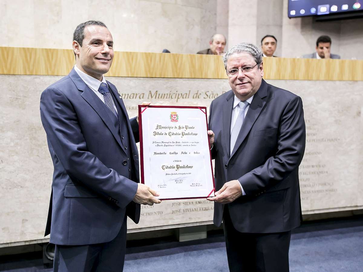 Humberto Silva recebeu o título de Cidadão Paulistano das mãos do Vereador Paulo Frange.