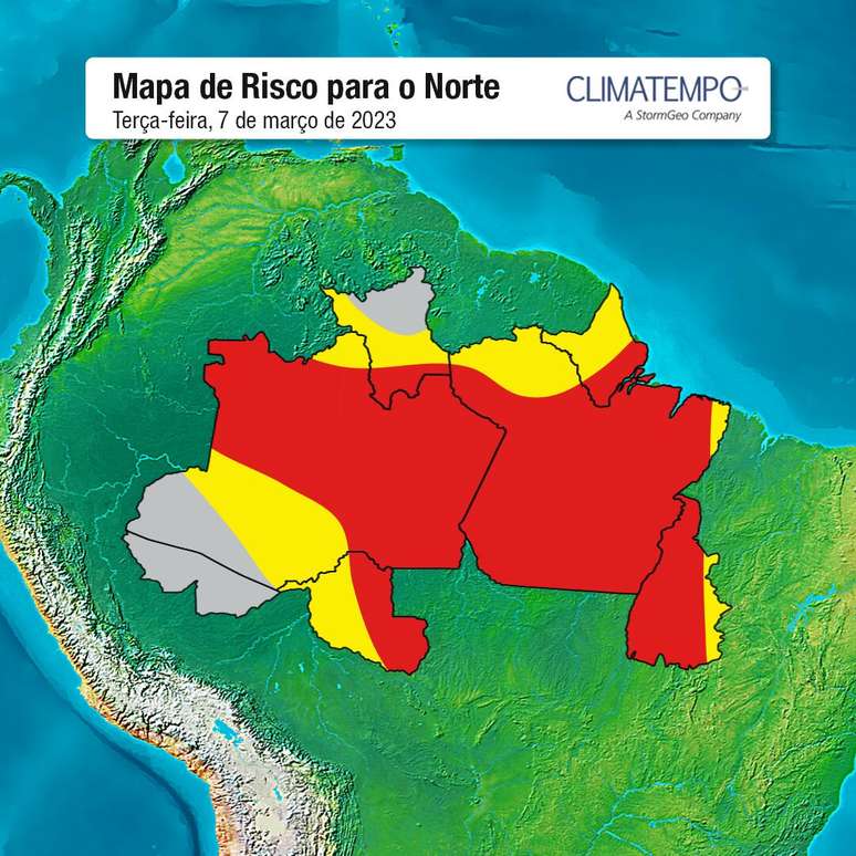 Foto: Mapa de risco para a terça-feira (07) na Região Norte do Brasil