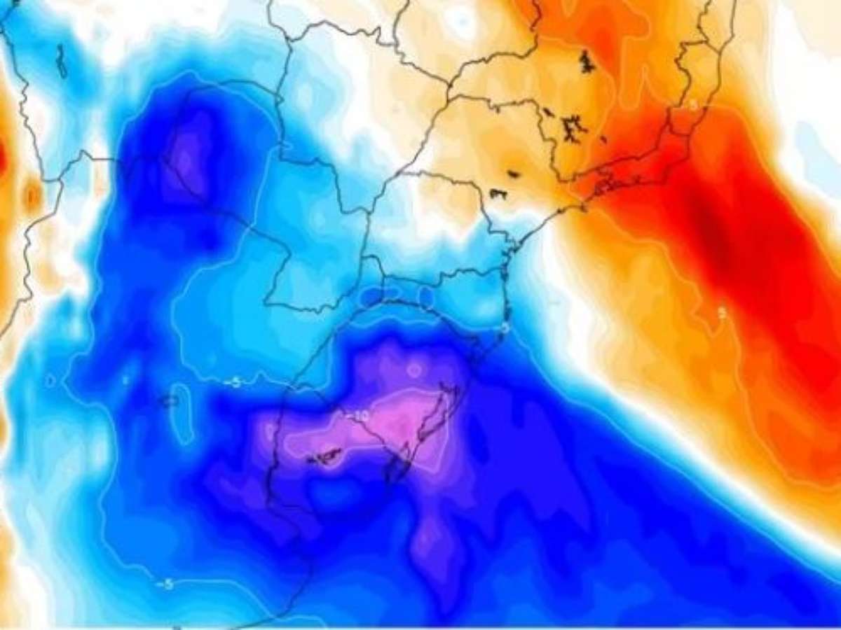 A entrada do ar mais frio está prevista para a tarde e noite desta quarta-feira no Rio Grande do Sul, o que resultará em mínimas ocorrendo já na noite de hoje nessas áreas. Ao longo do dia de quinta-feira, a massa de ar frio avançará, cobrindo os três estados do Sul e alcançando áreas do Oeste do Mato Grosso do Sul e do Sul do estado de São Paulo.
