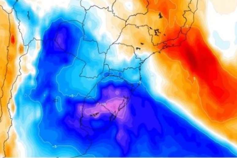 A maior influência desse ar frio será sentida na Região Sul, principalmente no Rio Grande do Sul.