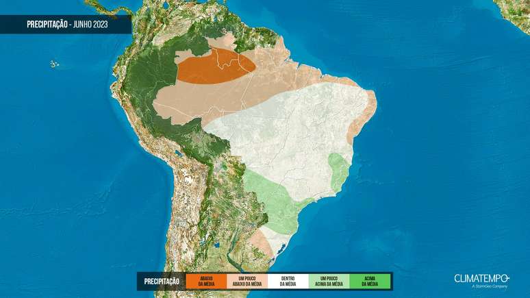 Previsão da tendência de precipitação em junho de 2023 no Brasil (Fonte: Climatempo)