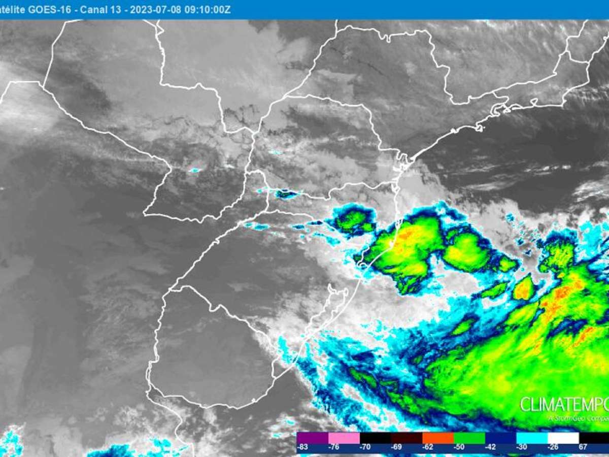 Novo ciclone extratropical se forma no sábado, 8/7/23, entre o RS e SC.