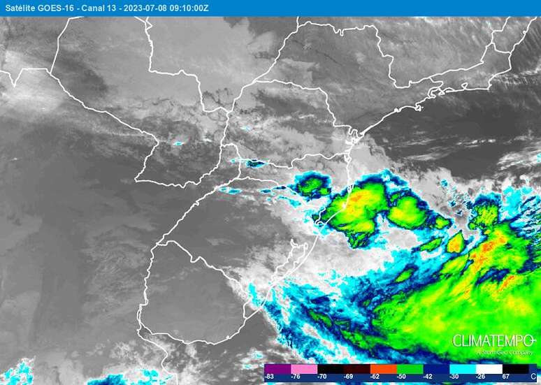Toda a chuva fica concentrada neste sábado, pois no domingo, 9 de julho, com o afastamento do ciclone extratropical, as nuvens carregadas se afastam e para de chover em quase todo o Rio Grande do Sul.