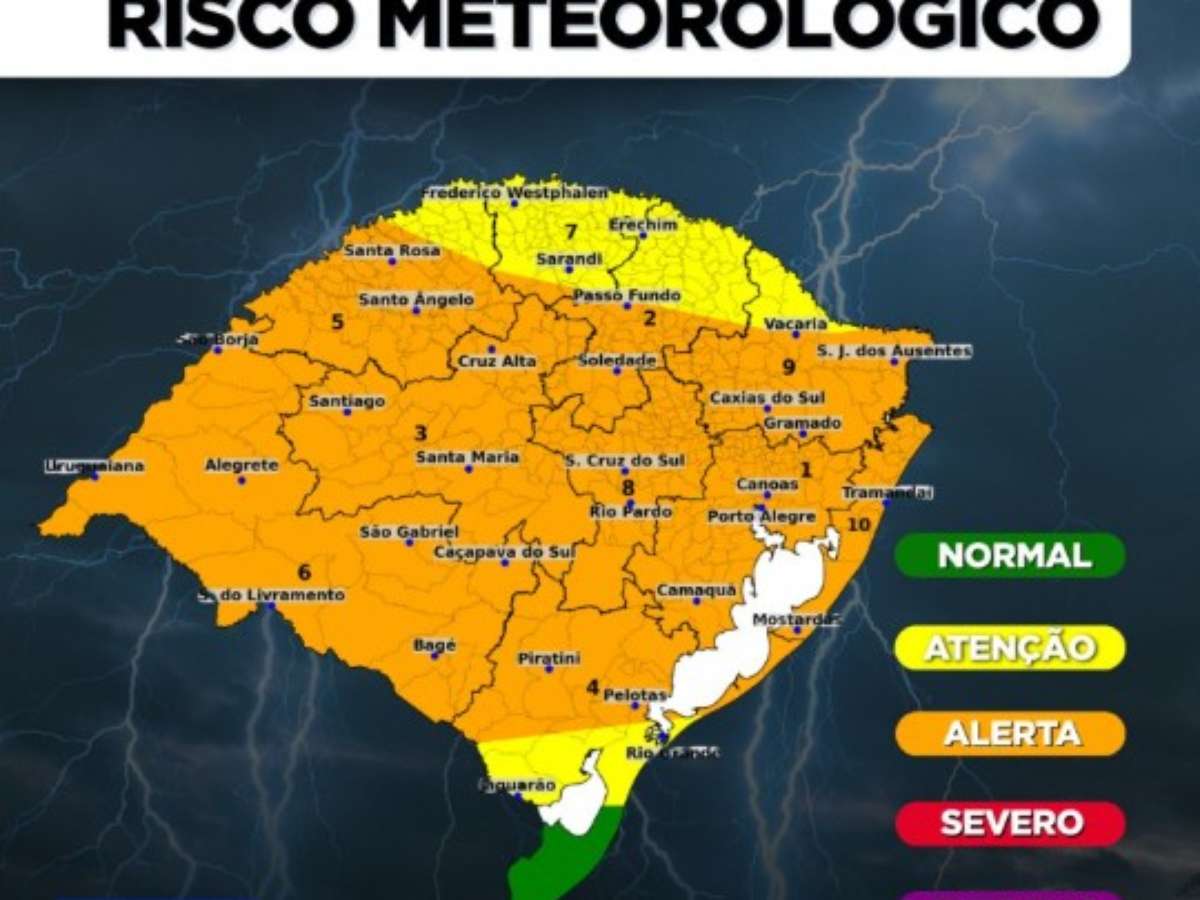 O primeiro impacto está previsto para o sábado, quando os temporais se organizam inicialmente na região da Campanha, nas áreas próximas à fronteira com o Uruguai, e no Sul. Durante a manhã, as condições severas se espalham pela Campanha, Costa Doce, Litoral Médio e região Sul. Já entre a tarde e a noite, a instabilidade avança para as demais regiões gaúchas, mantendo o risco de ventos intensos e granizo.