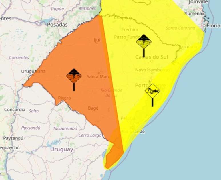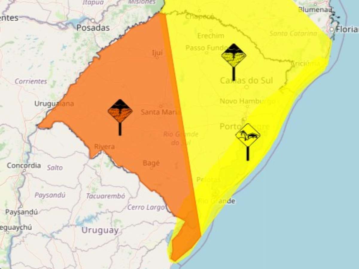 O Instituto Nacional de Meteorologia (INMET) emitiu três alertas que atingem o Rio Grande do Sul até este domingo (26).