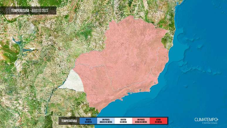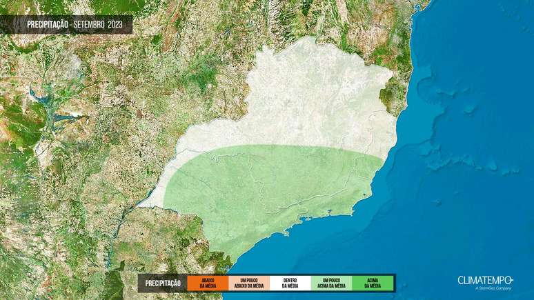 O primeiro mês da nova estação promete temperaturas um pouco acima da média em quase todas as áreas, exceto em algumas partes do sul e leste de Minas Gerais e do Rio de Janeiro que, devido à persistência do tempo seco, tendem a ter noites mais frias - dentro do padrão histórico.