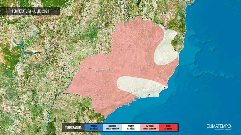 Anomalias mais significativas são esperadas para o oeste paulista e Triângulo Mineiro, onde o tempo fica seco e faz mais calor especialmente na segunda quinzena. Há expectativa de ao menos uma massa de ar frio que provoque frio intenso em SP, sul e oeste de Minas e do Rio, mas predominam as temperaturas mais altas.