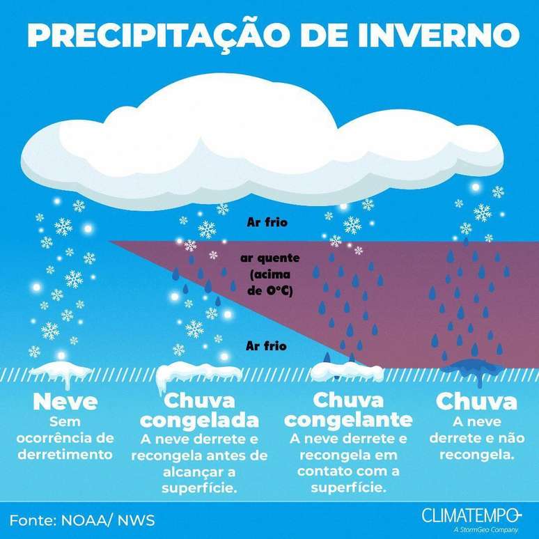 Foto: tipos de precipitação invernal - Fonte: Climatempo