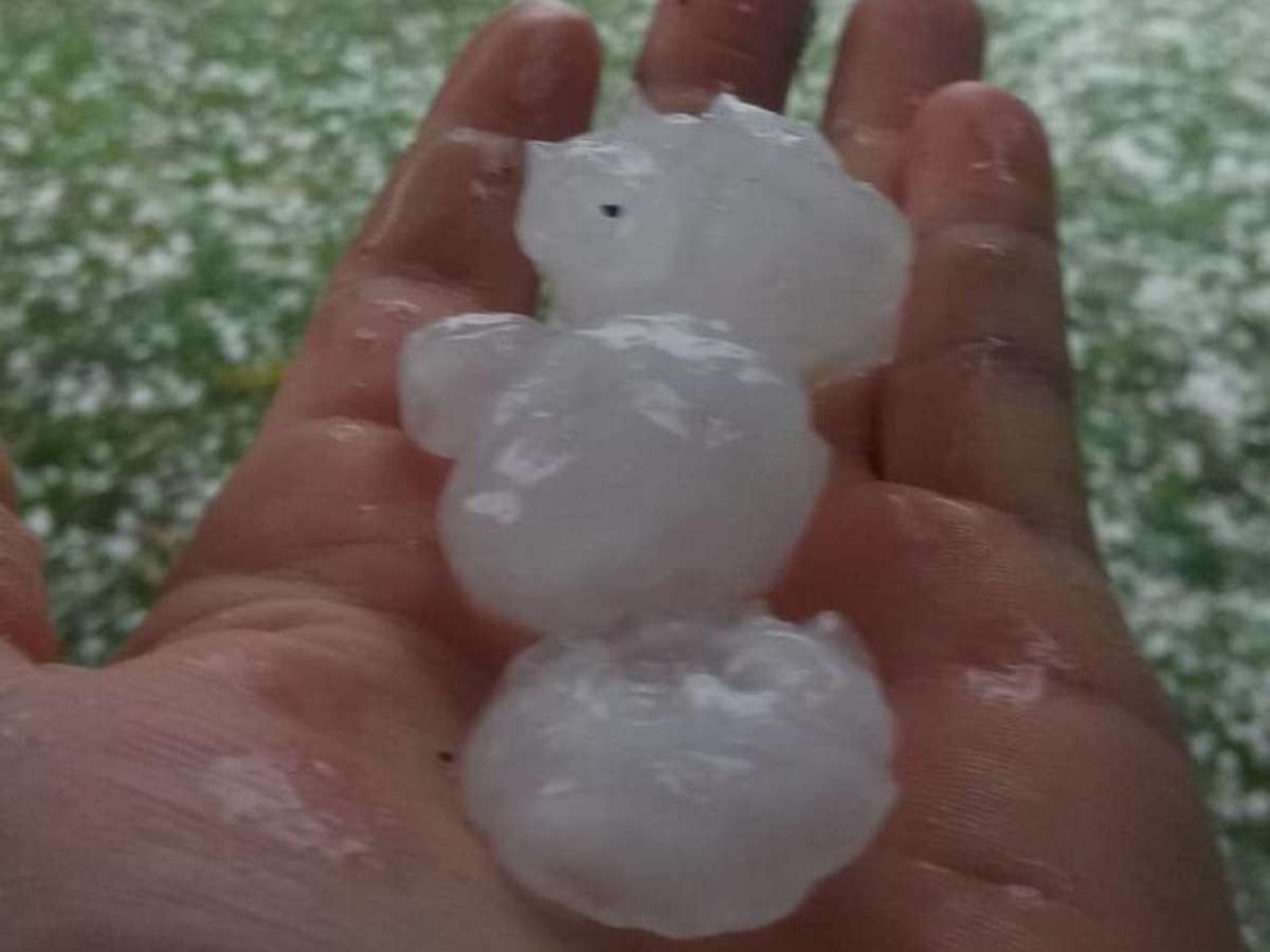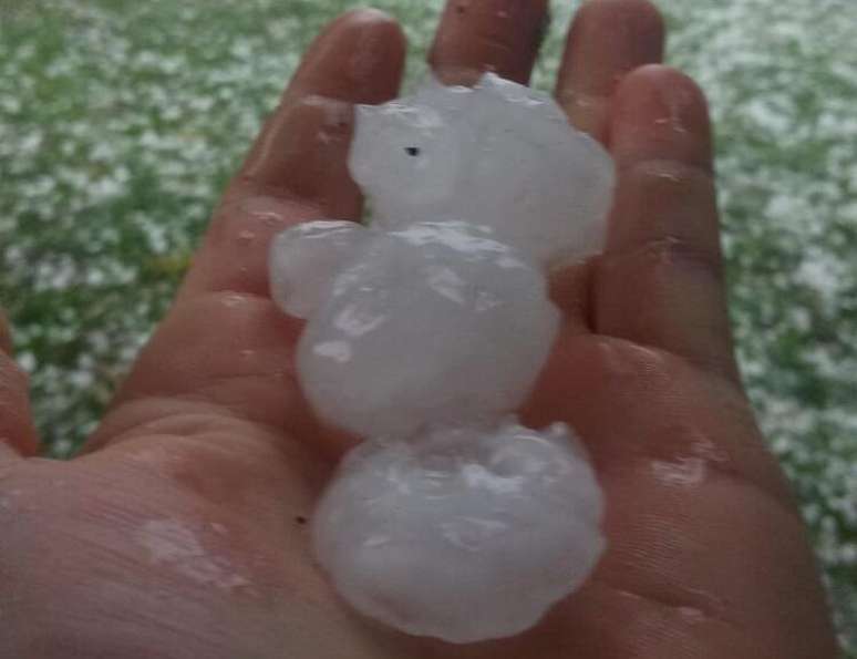 Grandes granizos caíram em Rio das Antas e Videira, em Santa Catarina, em 27/12/2022 (Foto: Patricia Gorisch Lenz)