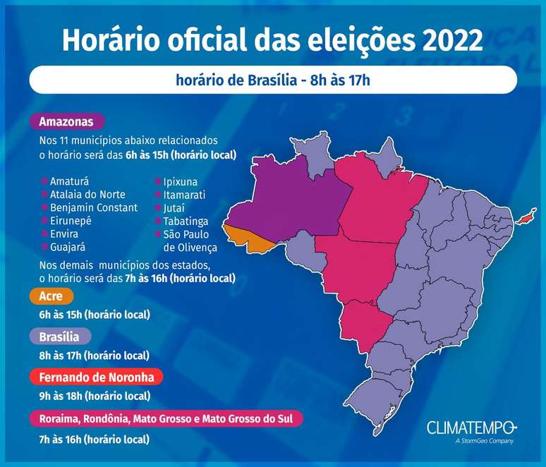 Este ano o governo federal inovou e as eleições ocorrem em horários diferenciados, de forma que a votação esteja encerrada em todo o país às 17 horas, pelo horário de Brasília.