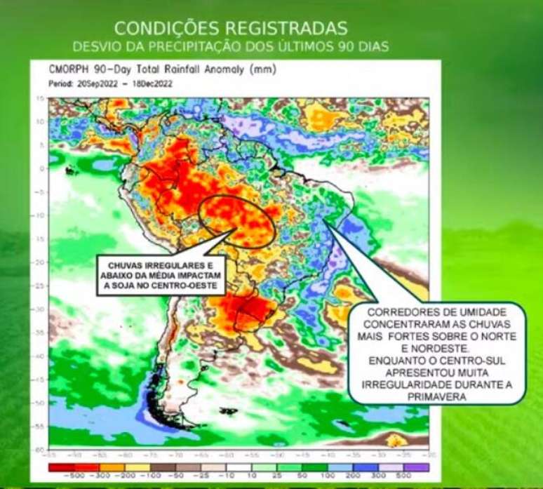 Por outro lado, pelo centro do país e no Rio Grande do Sul, a primavera foi marcada por chuva irregular o que acabou prejudicando o cultivo da Soja, em especial pelo Centro-Oeste.