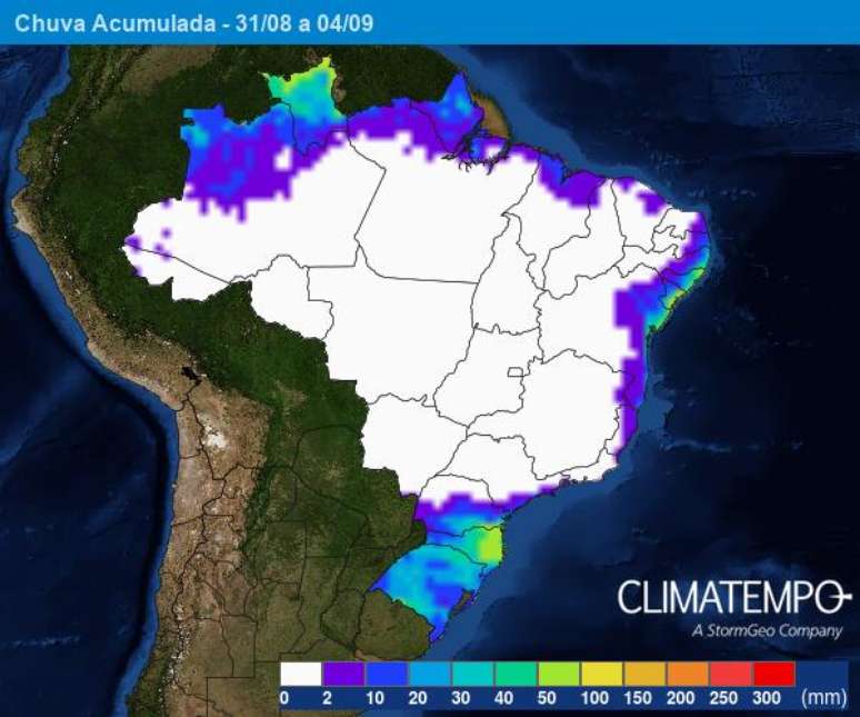 A frente fria não deve ser tão intensa em relação às anteriores, por isso não há expectativa de chuva por enquanto para as áreas centrais do Brasil, como Brasília, Goiânia, até mesmo no interior de São Paulo e oeste de Minas Gerais. As nuvens aumentam no início da próxima semana em Belo Horizonte, mas ainda sem expectativa de chuva.