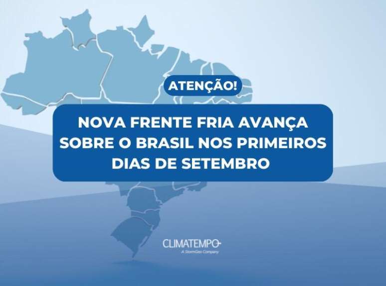 As temperaturas entraram em gradativa elevação no centro-sul do Brasil neste final de agosto, mas outra frente fria já é prevista para avançar pelo país nos primeiros dias de setembro. Com isso, a previsão é que volte a chover e esfriar no Sul, em parte do Centro-Oeste e parte do Sudeste. Os ventos também tendem a se intensificar neste período.