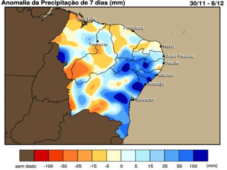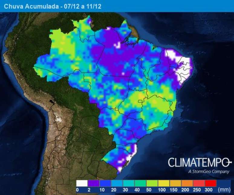 No decorrer dos próximos dias, a chuva deve ganhar ainda mais intensidade em áreas que mal tiveram tempo de se recuperar dos desastres causados pelos temporais. A previsão é que a quantidade de água chegue aos 50mm no norte do Espírito Santo e na metade sul da Bahia até o dia 11 de dezembro.