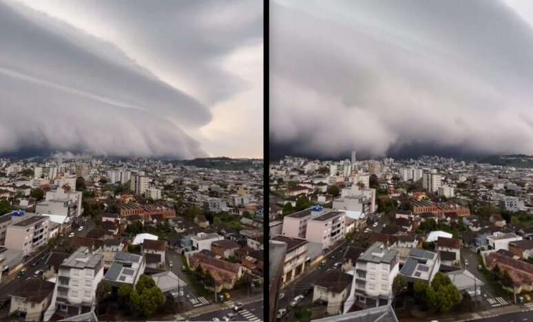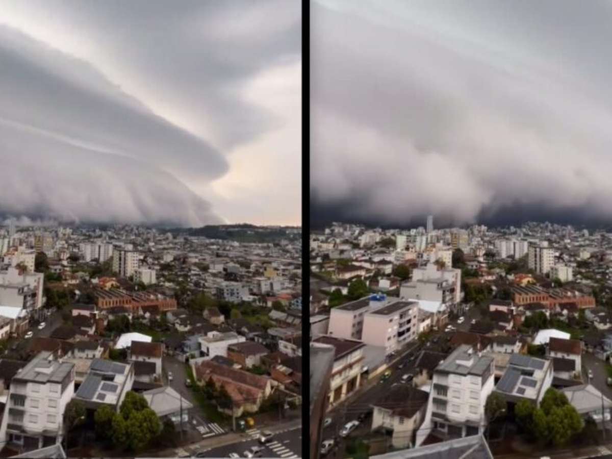 Vídeo impressionante! Nuvem prateleira avança sobre cidade no Rio Grande do Sul