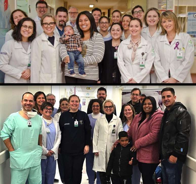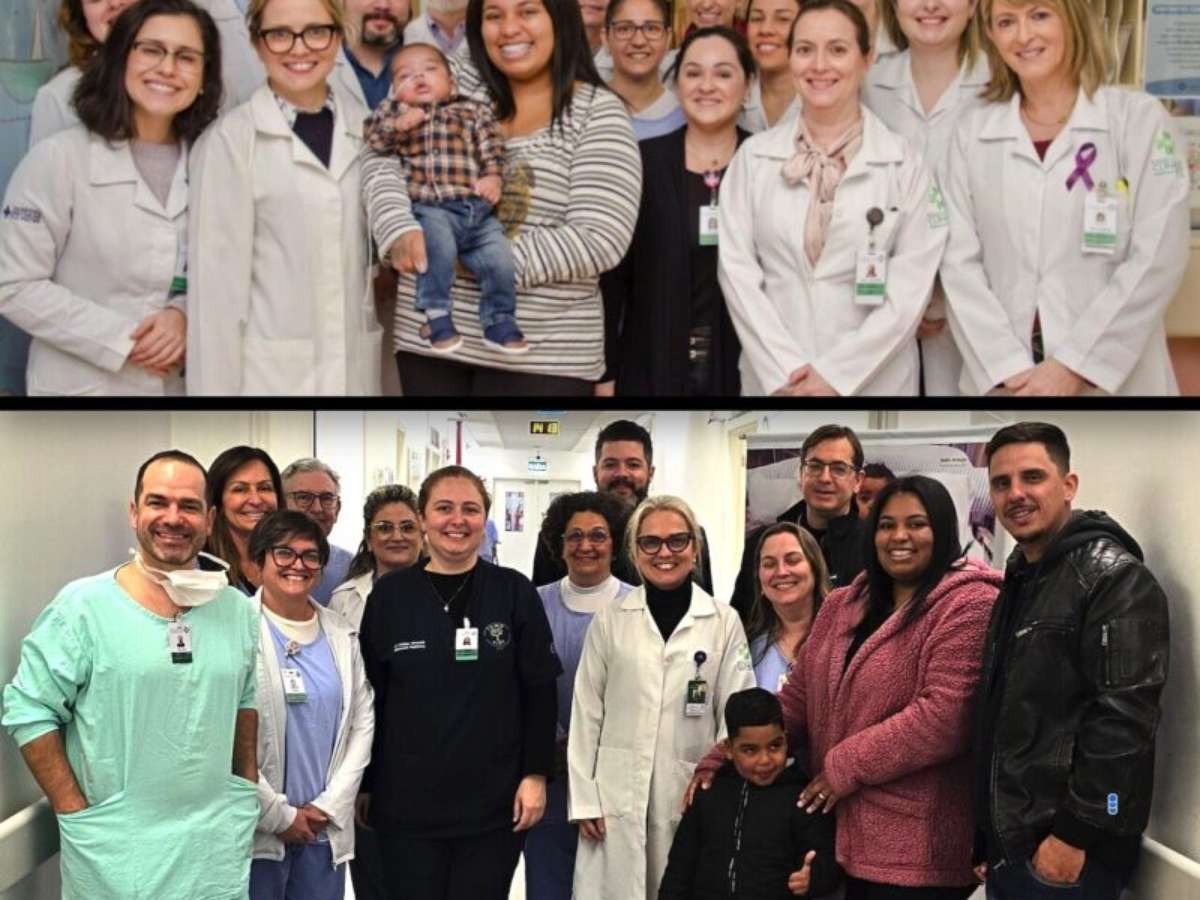 Idealizadores desta visita especial ao HCPA, a família celebra a vida do pequeno. " Ele veio para o lugar certo. Poderia ter sido mandado para qualquer hospital, mas se não fosse no Clínicas, sem o Ecmo, ele não estaria aqui ", afirma a mãe. O pai complementou, na conversa com a equipe multiprofissional, que se reuniu no corredor para ver o Pedro. " Era pra ser. Não sabem o quanto é bom ver vocês. Sempre vamos ter isso no coração ".
